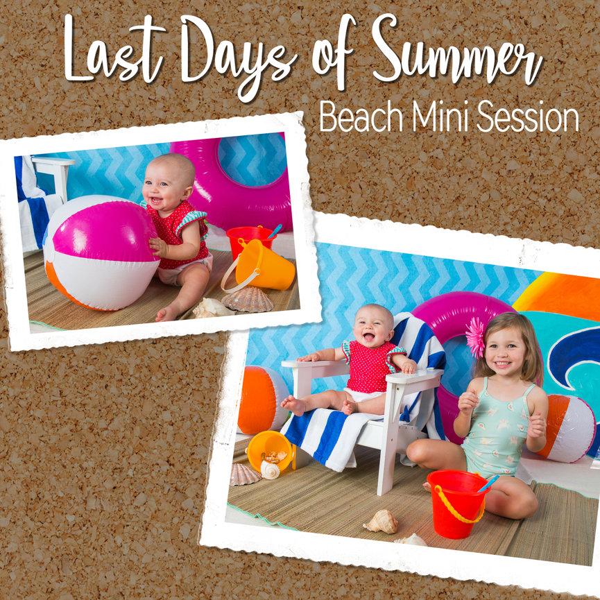 Last Days of Summer - Our Beach Mini Session. Before the kids head back to school, collect their favorite beach gear and come have some “fun in the sun” on our indoor beach set.
