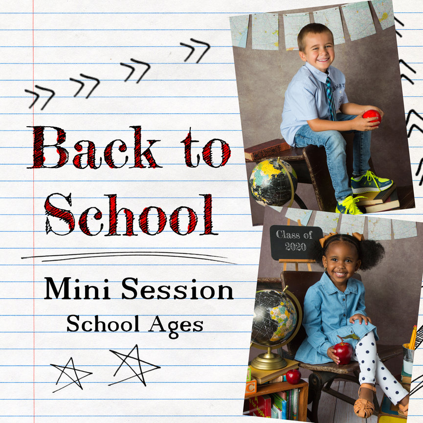 Back to School - Start your child’s school year off with this mini session, with a vintage desk, map banner and other school like props.